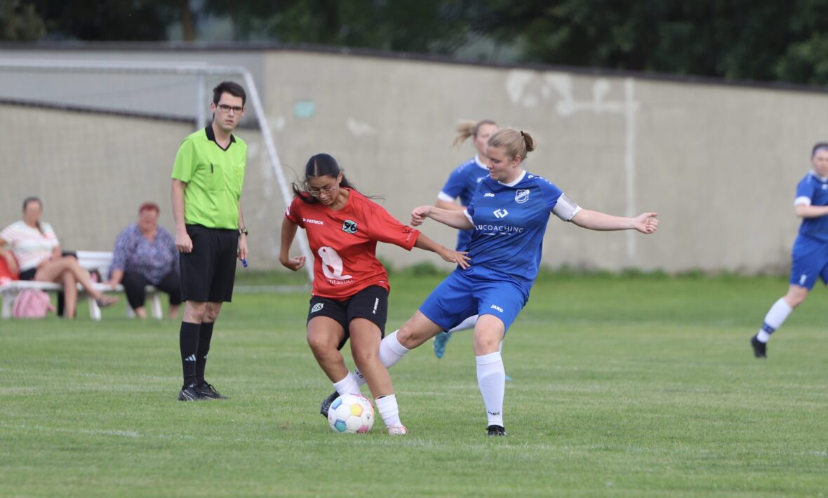 Den Auftakt machen um 18.15 Uhr die beiden unterlegenen Teams aus dem Halbfinale. Die Drittvertretung von Hannover 96 hielt als Kreisligist lange mit gegen den Landesligisten aus Denkershausen, musste sich am Ende aber deutlich geschlagen geben. Ähnlich sah es bei den Vogelbeckerinnen aus, die eine gute Anfangsphase erwischten aber dann chancenlos waren.