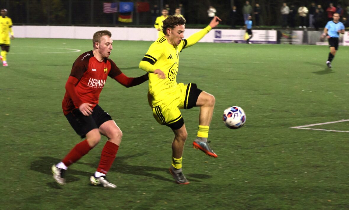 Jede Menge Stimmung, einige gelbe Karten, aber ganz wenige Torraumszenen hatte die Partie am Freitagabend zu bieten. Dabei erwischte Northeim die bessere Anfangsphase, ohne sich aber Chancen herauszuspielen. Nach und nach entwickelte sich aber eine niveauarme Partie, die sich weitesgehend zwischen den Strafräumen abspielte und von den Abwehrreihen bestimmt wurde. Dabei hatte der bereits gelb verwarnte Tristan Mediavilla (39.) großes Glück, dass er nach einem taktischen Foul nicht die verdiente gelb/rote Karte von Schiedsrichter Steffen Geismann bekommen hat. Die Auswechslung zwei Minuten später bestätigte das. „Da haben wir Glück, dass wir da nicht zu zehnt weiter spielen“, so Eintracht-Trainer Kevin Mundt. Vor dem Halbzeitpfiff setzte Bovendens Jona Wehofsky (41.) einen Freistoß (siehe Video) knapp über den Querbalken. Die größte Chance im Spiel vergab dann der Ex-Northeimer Navid Atashfaraz (44.), der freistehend an Eintracht-Keeper Leevi Andreß scheiterte.