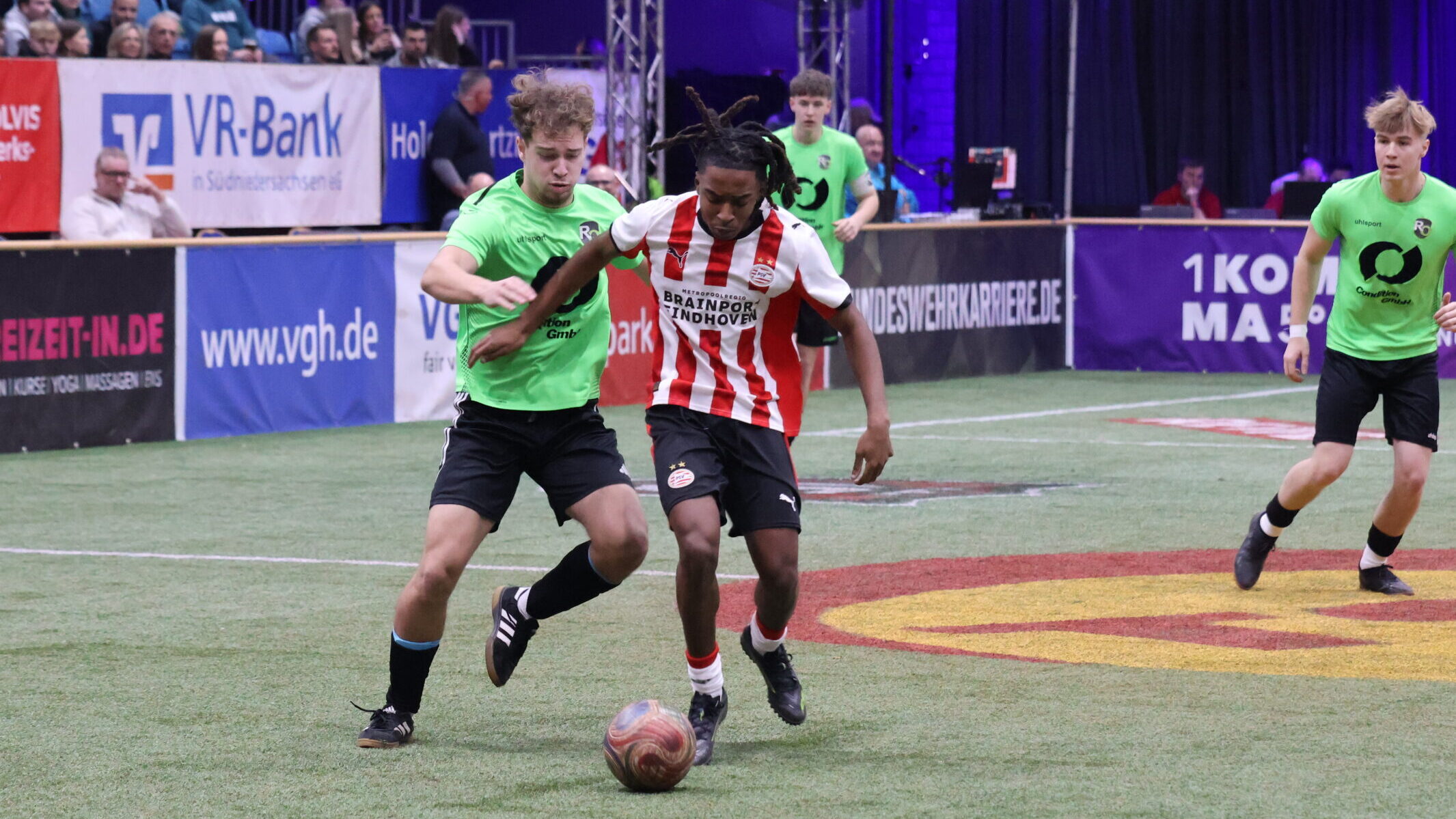 Der SV Rhume/Oder präsentierte sich gegen die Niederländer von Beginn an gut, hielt körperlich dagegen und hatte die Großchance auf den Anschlusstreffer zum 1:2. In den Schlussminuten schraubte die PSV aus Eindhoven das Ergebnis in die Höhe. Dabei zeigte Rhume/Oder-Keeper Sverre Barke eine überragende Leistung und bewahrte seinem Team noch vor einer höheren Niederlage.