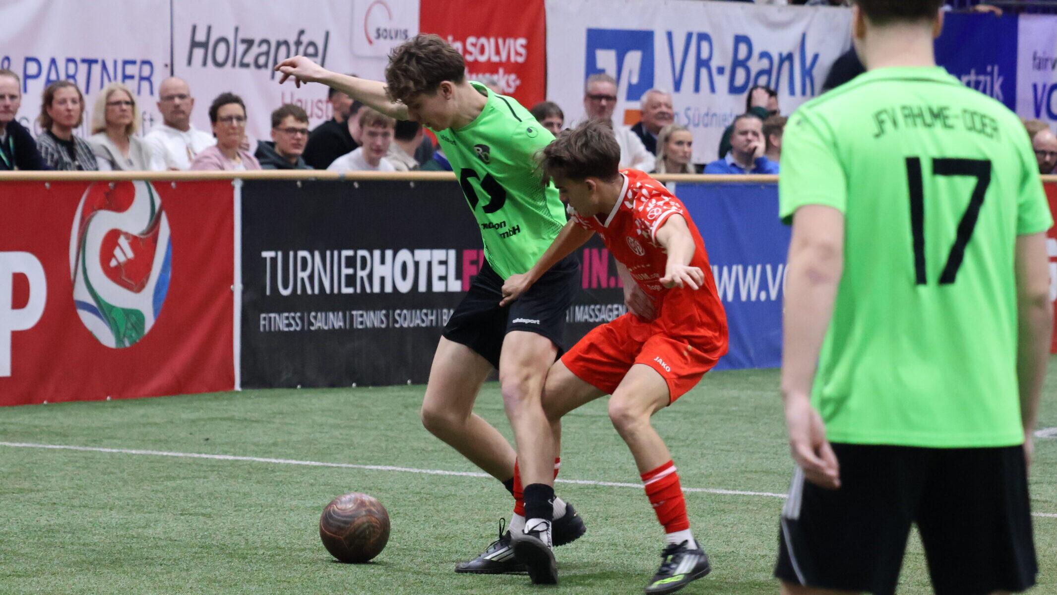 Eine unnötige Niederlage musste die JSG Nörten gegen Osterode einstecken. Nachdem Nick Metzler per Traumtor den Rückstand ausgleichen konnte, war Nörten am Drücker und näher am zweiten Treffer dran als die Osteröder. Doch ein individueller Fehler brachte die JSG ins Hintertreffen. Damit verpasste Nörten den zweiten Turniersieg und misst sich morgen noch mit Austria Wien und Manchester United.